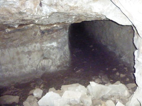 写真で見るよりは空間はあり、抜け ることができました。 しかし、この溜まってるのは全部ズリ ではないでしょうか。掘って出た瓦礫 で、崩れたような印象はありません。 |