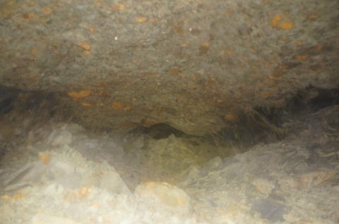 対岸からはおろろんさんの強力ライトの 支援が。 この先はピカさんと私で調査することに。 |