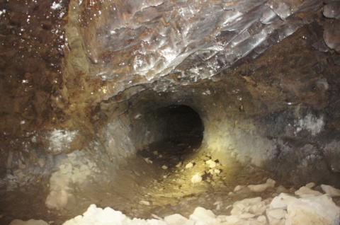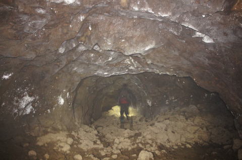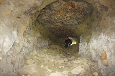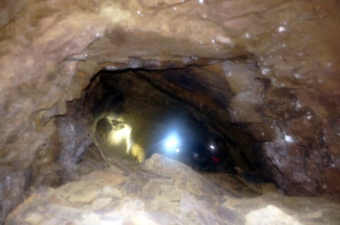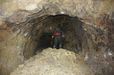 横坑はさらに南側に。 ここから横坑はまた狭くなります。 南5坑からこれまた未知の南6坑に繋がる 横坑ってことになりますな。 |