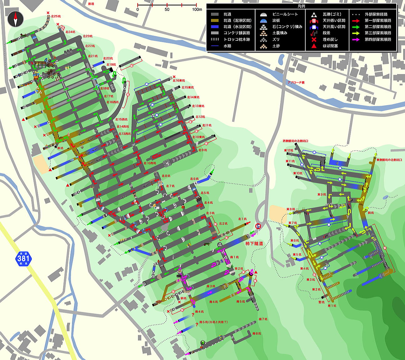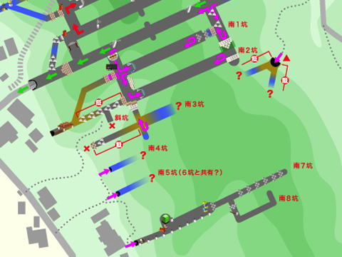 ![]() 思いの外あっけなく南3坑本坑を突破できたお蔭で、南3坑〜南5坑、南6坑への横坑まで確認できました。 埋没や水没で見に行けなかった個所は無く、東側は完全解明といって良いでしょう。 やはり北坑に比べればこの南坑は後発での開発だったことが分かりました。 さあ、残るはあの小水没&大水没の2洞のみ!!! ここを突破できればこの地下工場の全容が解明されることになります。 次回、遂に最終回か!? 以降、 その37 に続く! |