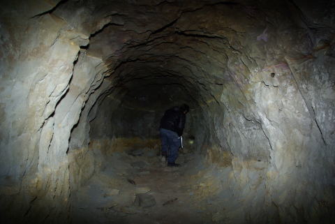 一方左手は北12坑方面。 こっちは行ったことはありません。 左手の横坑は結構大きな穴だと思ってました が、向こうを見るとまたえらく小さな穴に。。。 恐らく北12坑本坑寸前で窄まっているように 感じます。 。。。で、ここから北12坑に抜けてしまうとまた 中途半端な場所からのレポになってしまいます。 ので、重複しますが、一旦このまま北11坑を 東進。坑口前の大きな横坑を左折して、東端の 北12坑から探索を再開しようと思います。 (写真提供:おろろん氏) |