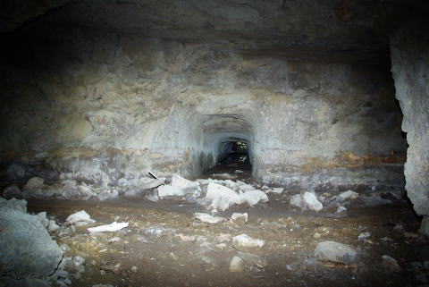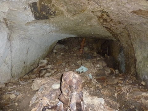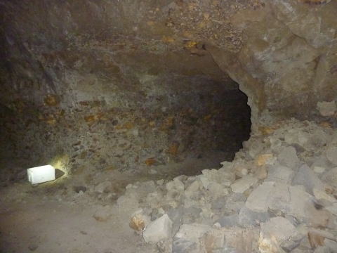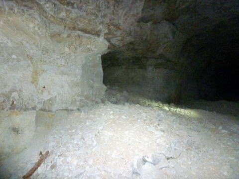 一方左側、北11坑方面ですが。。。 うおおおお。。。なんじゃこりゃ。。。 小さな穴なのはいつものことですが、この視界 に広がる瓦礫の山はなんでしょうか。 これは向こう側へ貫通させた瞬間に終戦に なったから放置された、てな感じなんでしょうか。 |