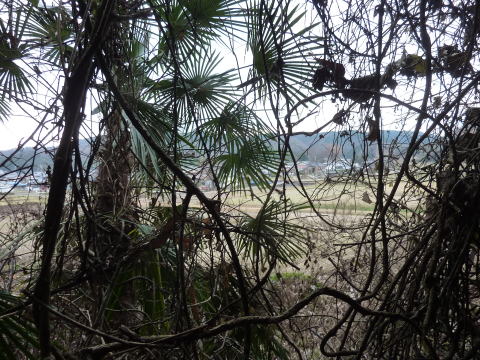 どうやらまだ竹藪地帯のようで、枯れ竹の残骸 が覆いかぶさってきているようですな。 これは出たくない。。。 |