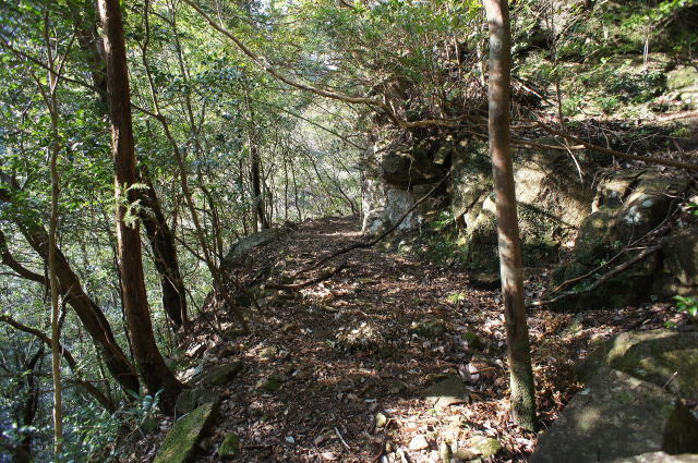こちらは先程の堰堤方面に向かう軌道敷き。 プチな切通がナイスです。 |