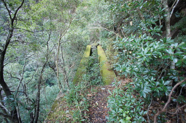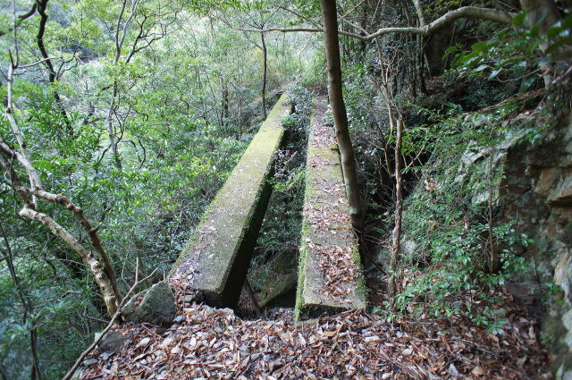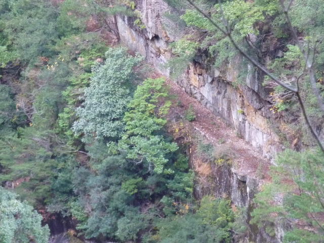 この辺りは半片洞門という感じです。 当時は今立っている軌道敷きもなかったと思います。 人力でこの岩盤を砕いて道を付けたというのでしょう か。 途方もない作業です。 |