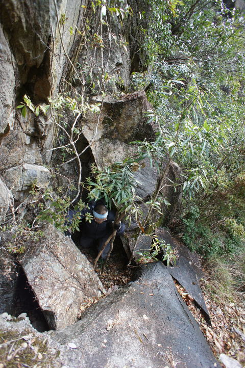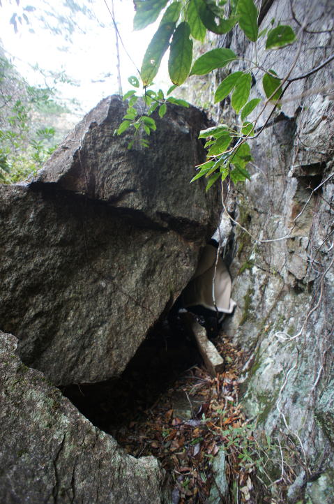 2018年。左側の回り込む道が見出せず、止む無く 岩の隙間に突入! |