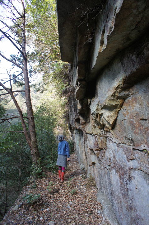 おおお…これは…片洞門…かな? 一瞬ですが、片洞門状に岩が迫り出しています。 |
