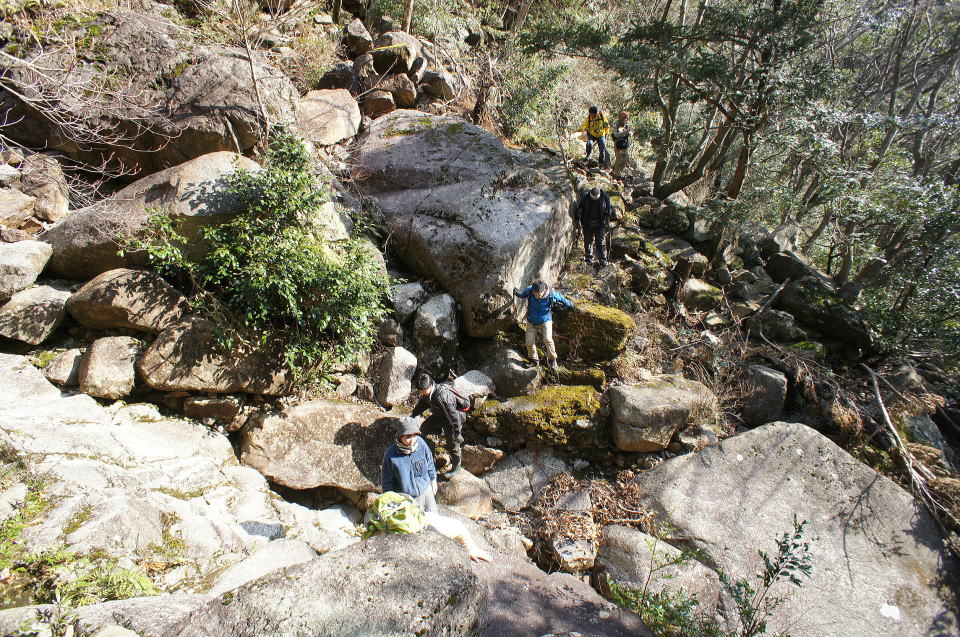 ![]() 振り返り。続々と探索部隊が渡ってきます。 4番目の青い服装のゆたさんがいる辺りがコンクリ橋台でしょうか。 ということはこの巨大な岩はこの林鉄ができた後に転がってきている、ということでしょうねえ…恐ろしい。 以降、 その2 に続く! |