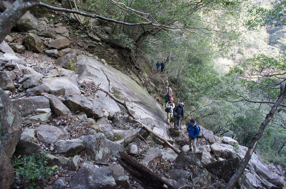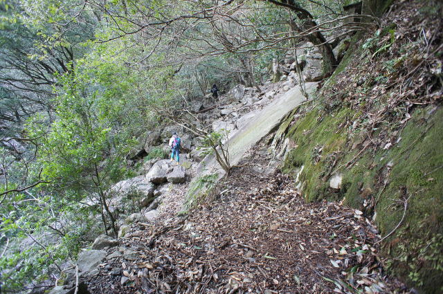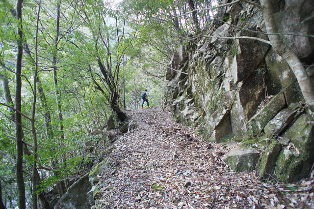 掘割からの正面は一枚岩のような、ウンザリするほど固そうな岩盤です。