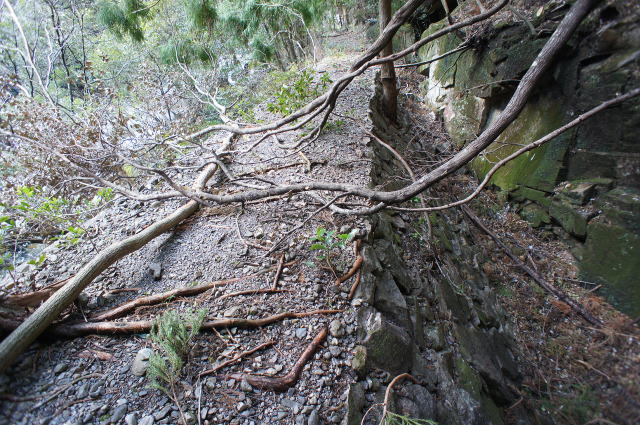 路肩の石積みも空積みばがら今でもその役割を