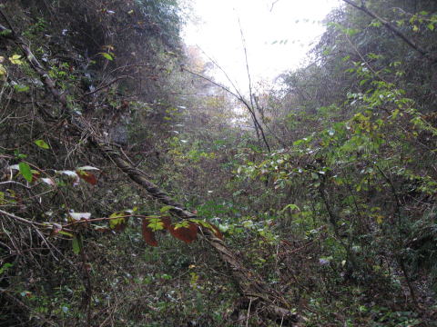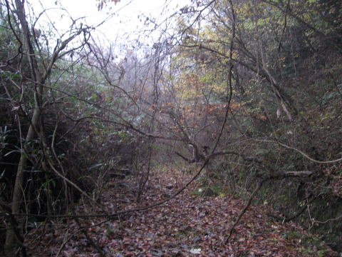 数分後、谷筋深くで分岐する旧線跡に突入成功。。。