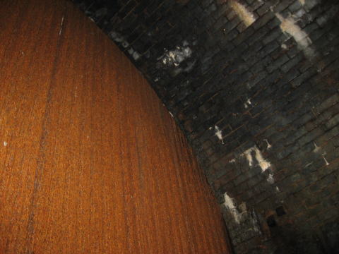 長く地下水が染み出しているのか、石積みが赤茶けて