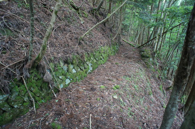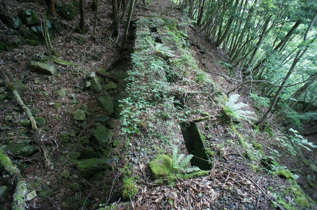 ![]() 土留めの石積みが綺麗に残る軌道敷き。 |