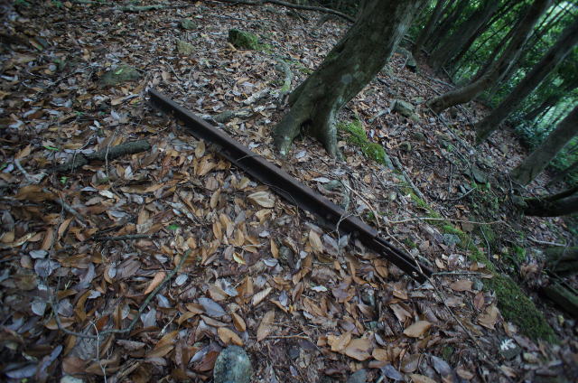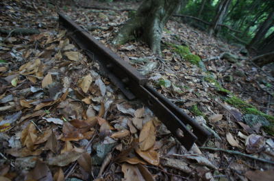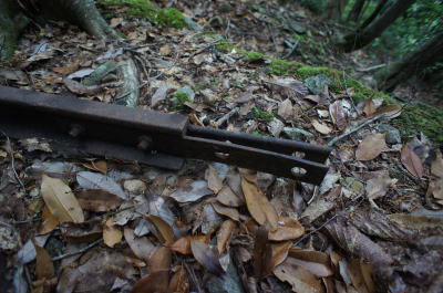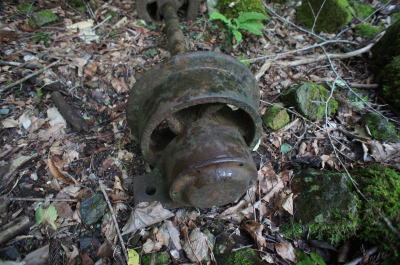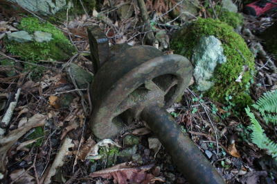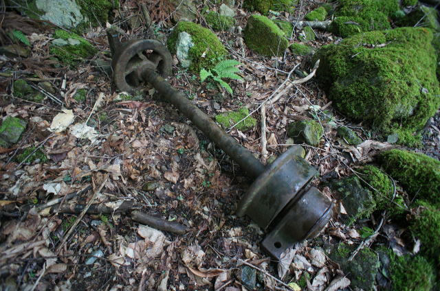 ![]() そしてこの林鉄遺構で最大の忘れ形見が登場。 トロッコの車輪が一対。 |