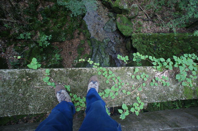 ![]() 地味に植生が邪魔をして渡り辛いコンクリ桁。さすがに高すぎて足が竦みます。 これが鉄橋だったら………どうしたでしょうねえwww |