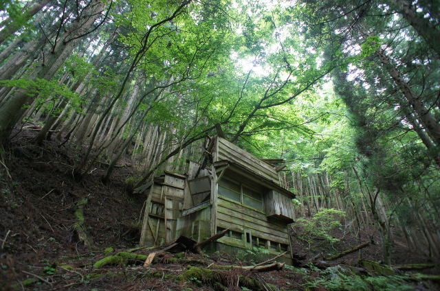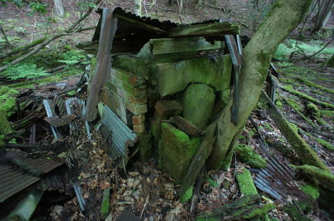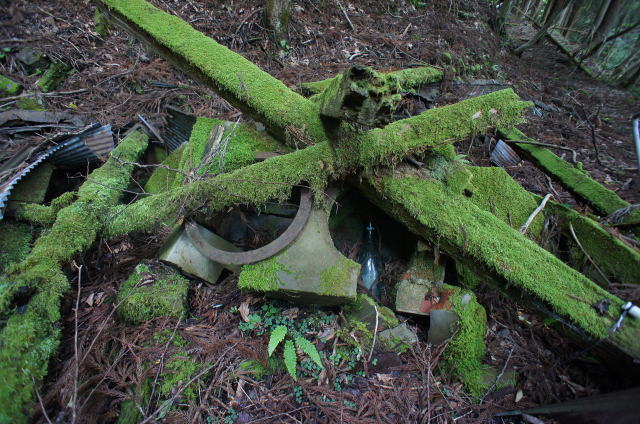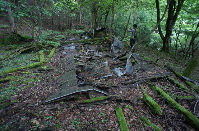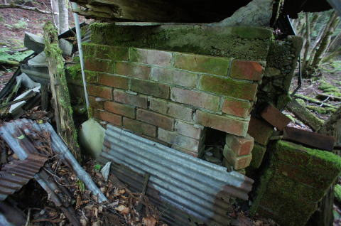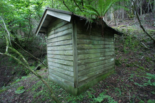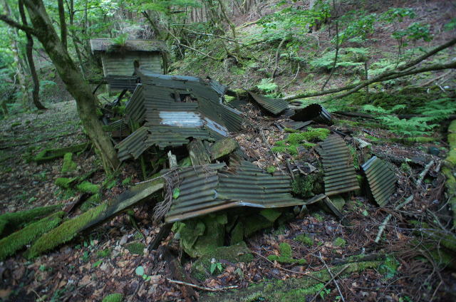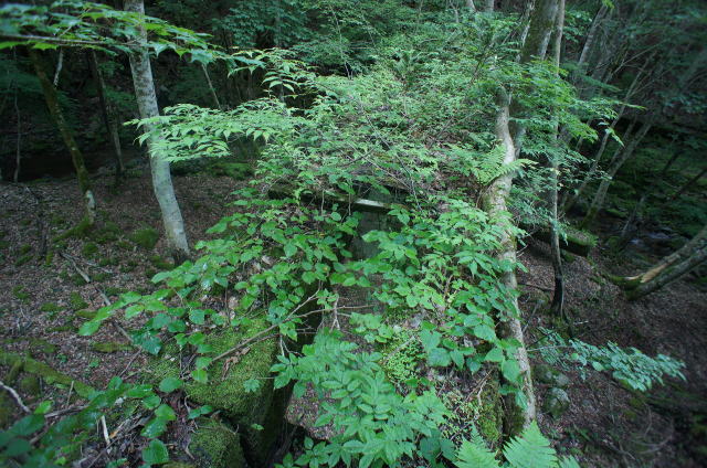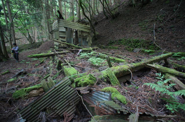 ![]() そしてまたも遺構が。 今度は廃屋です。どうやらこの林鉄に携わる林業の方々の宿舎だったようです。 |