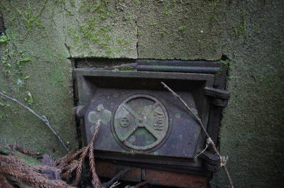 ![]() ![]() 風呂釜の外壁についている金具扉。 火入れ、薪投入、炭掻き出し用の窓ってところでしょうか。 |