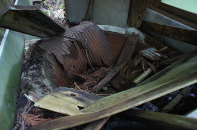 ![]() この有様です。 コンクリと丸太が折り重なるように倒れています。 しかし、コンクリの残骸は分かりますが、この丸太は何? |