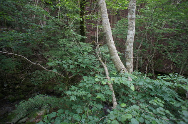 ![]() 隧道を経由して、ようやく中音水川上流に歩を向ける軌道敷き。 大迂回をすることにより、かなり高度を稼ぐことに成功しています。 |