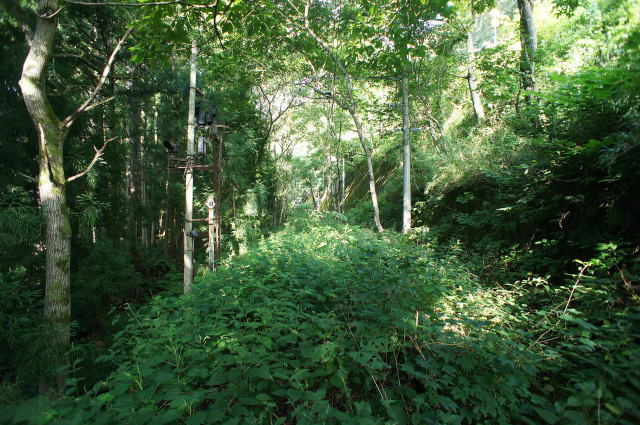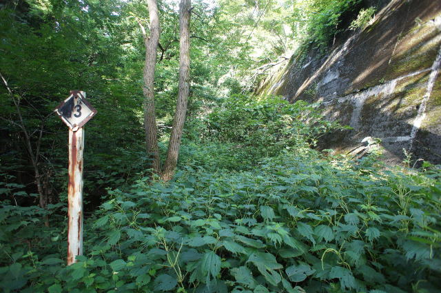 何かしらの表示板。 右手は現行線側ですが、かなり高低差がついて きました。 |
