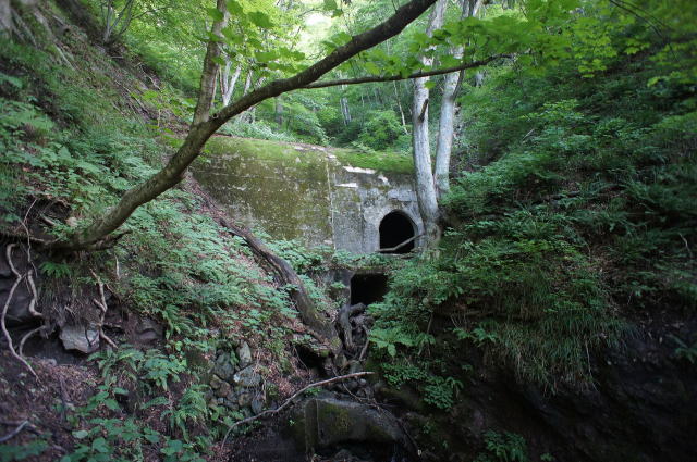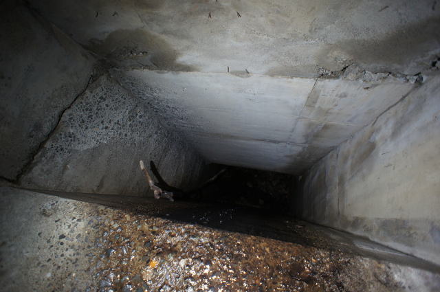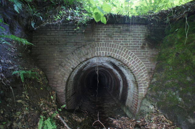 下の穴はやはり暗渠です。 ここも奥は竪坑になっているようです。 いやあ、工事お疲れ様です。 残念ながら銘板はありませんでしたが、第2赤岩 橋梁で間違いないのではないでしょうか。 |