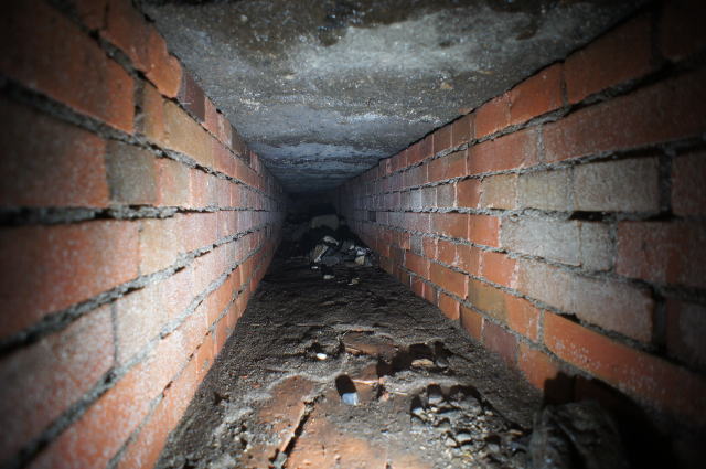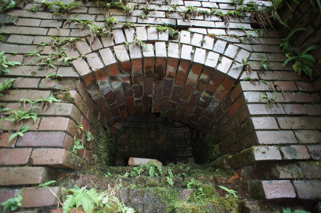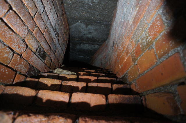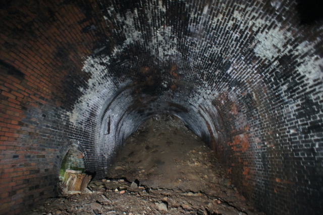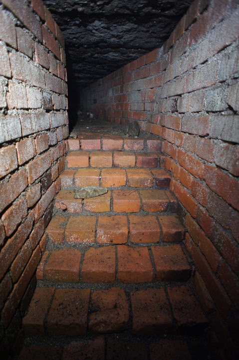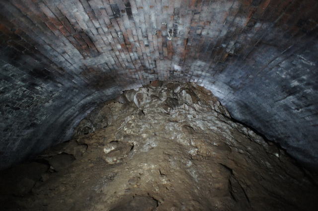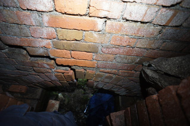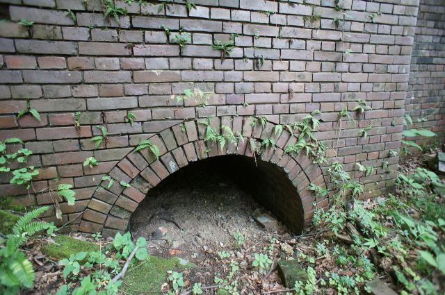 内側にもちゃんと煉瓦アーチが。 辛うじて立てる隙間です。 |