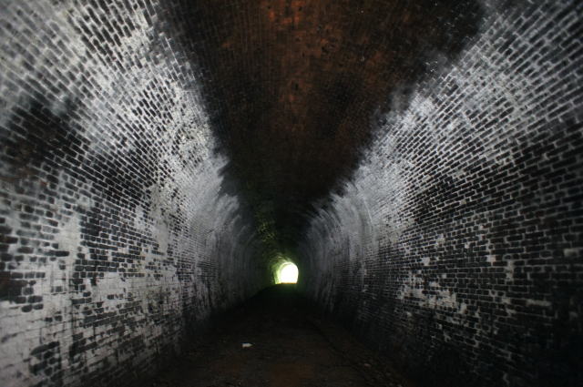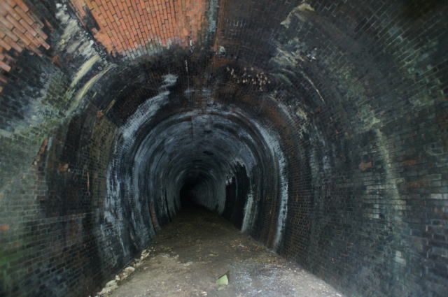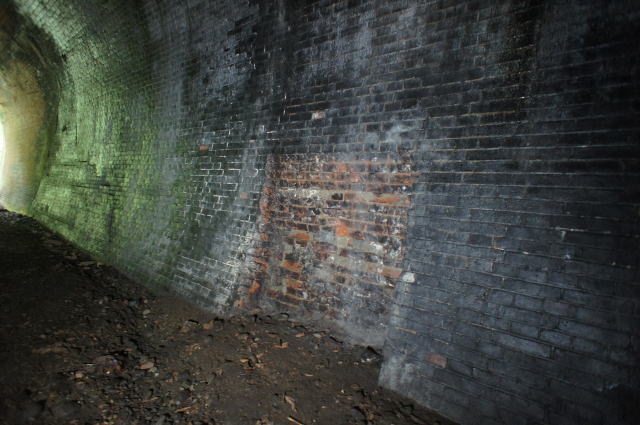 東からの洞内。やや左へ折れています。 西側はヨッキさんのレポによると、現行線の 真横でほぼ埋められた状態の様です。 ちょっと内部は確認できるようですが、私は やめときます。 |