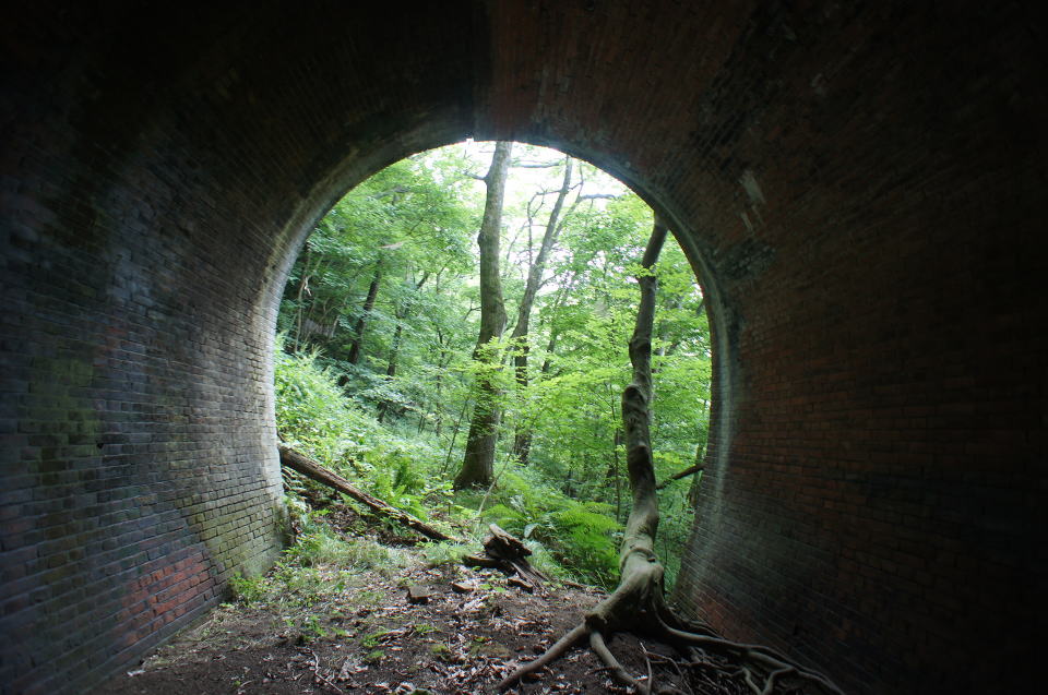 ![]() 7号トンネル東側坑口。あまりに美麗なので大きい画像をお届けします。 この洞内から伸びる木がまた何とも… |