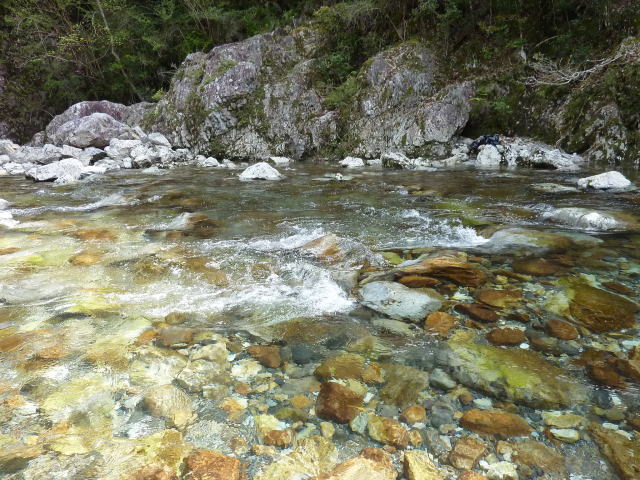 登山者や、沢屋さんはここから黒蔵谷奥地にアプ