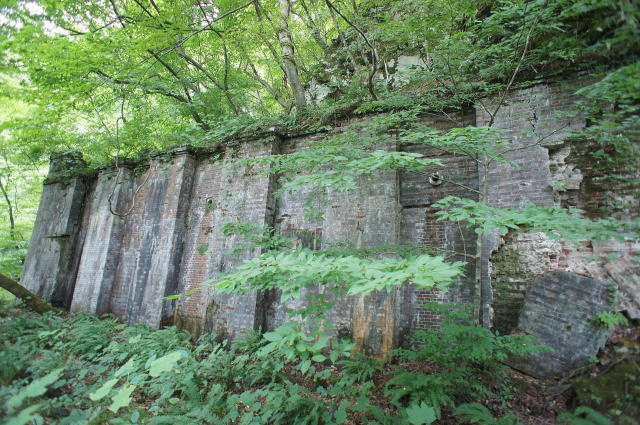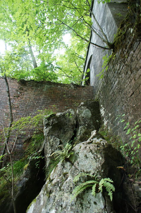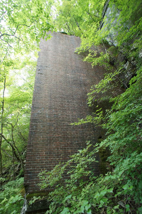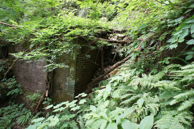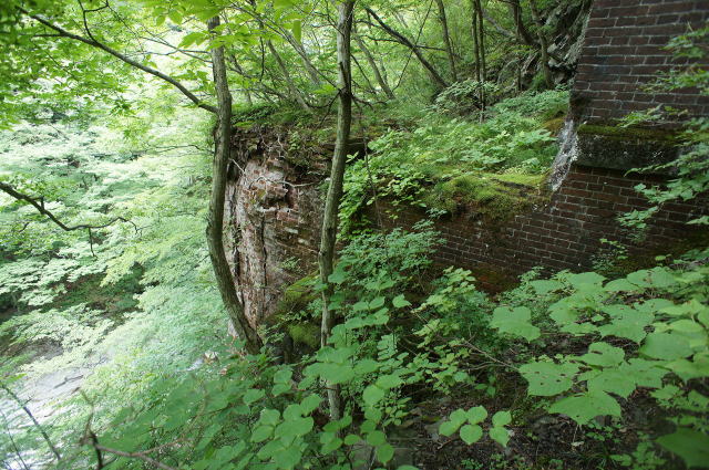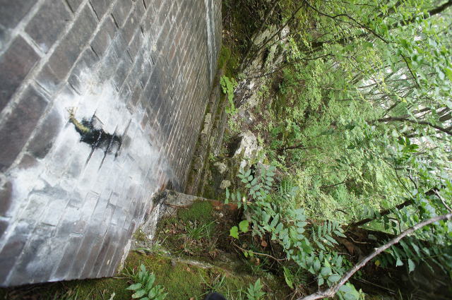 少し窮屈な路盤を先に進むと、右手に煉瓦積 みが現れました。 …これはひょっとして… |
