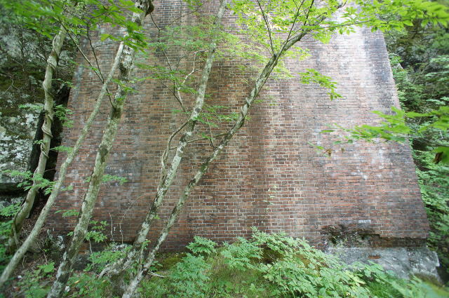 そそり立つ煉瓦橋台。 やはり少し新しい気がします。 ネットで見かける竣功当時の写真では、この 橋台部分にアーチがあったようですが、これは ありません。 ということはつまり、後年に改修されている、 と判断するのが正しそうです。 |