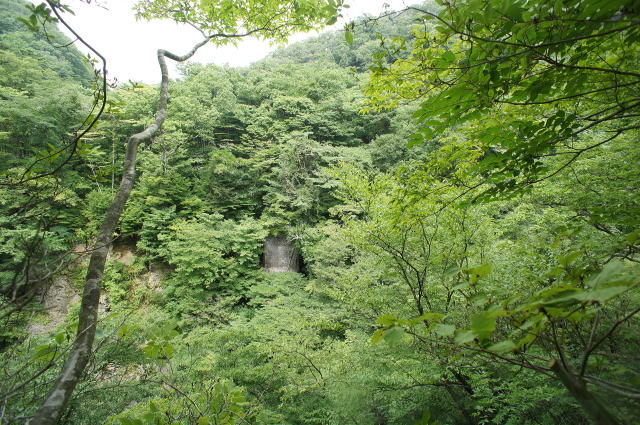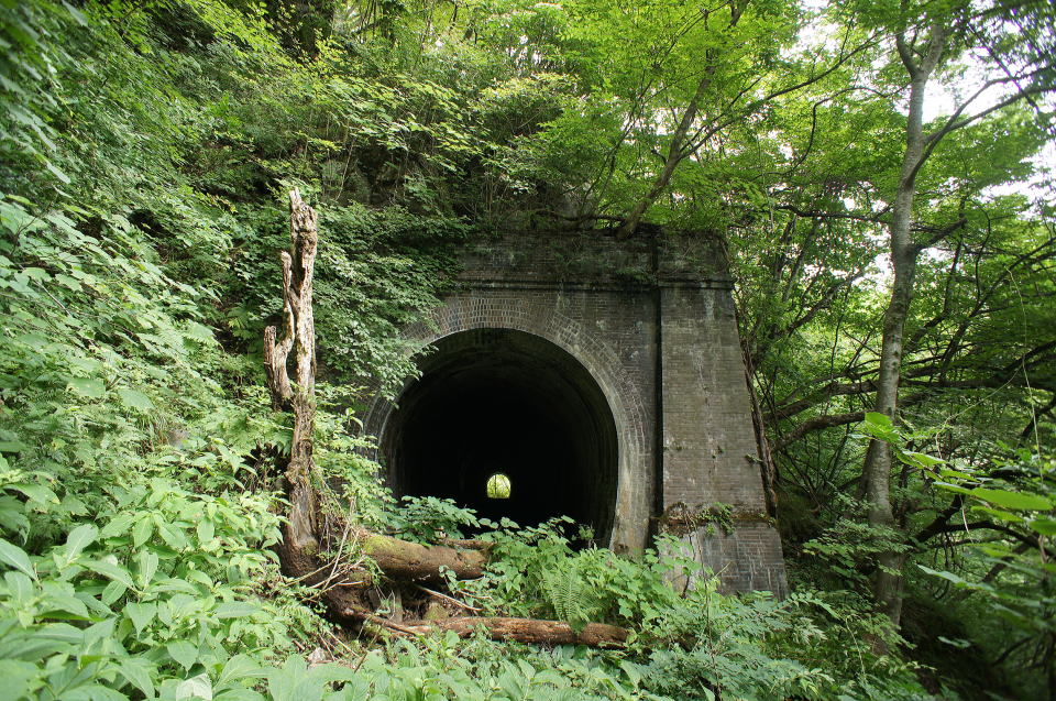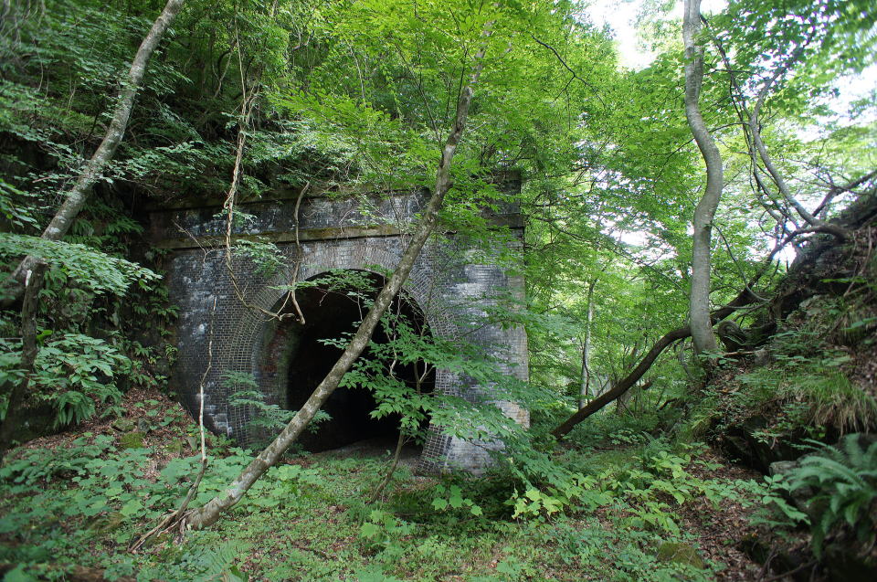 ![]() 第一松川トンネル(初代5号トンネル) 東側坑口 意外と荒れている初代5号トンネル東側坑口。倒木と土砂が堆積し、地味に歩き難い状態になっております。 |
