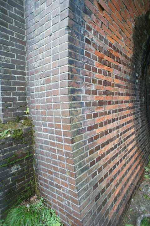 で、面白いのがこの装飾。 小口ラインに焼過煉瓦を使用しています。 鉄道トンネルではなかなか見ないです。 |