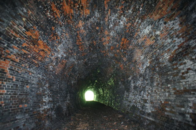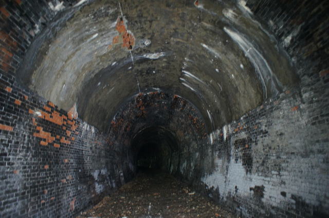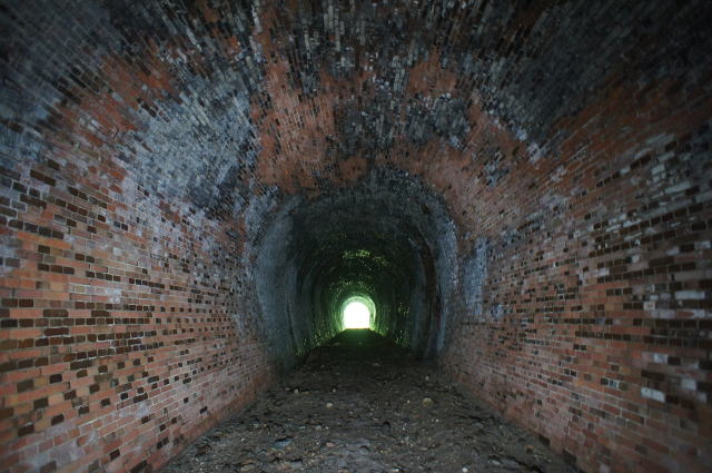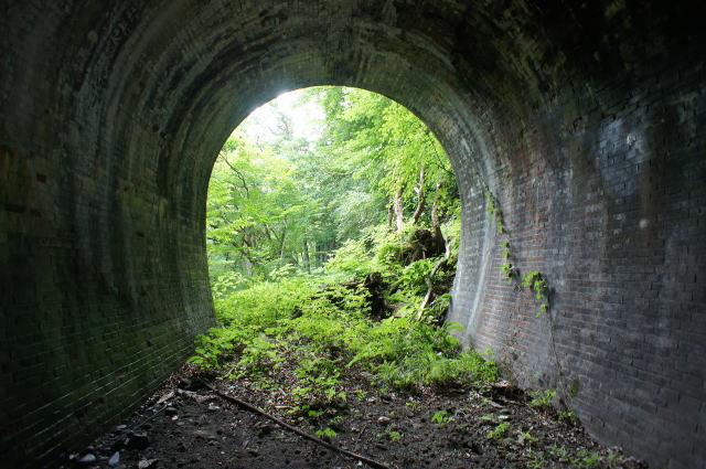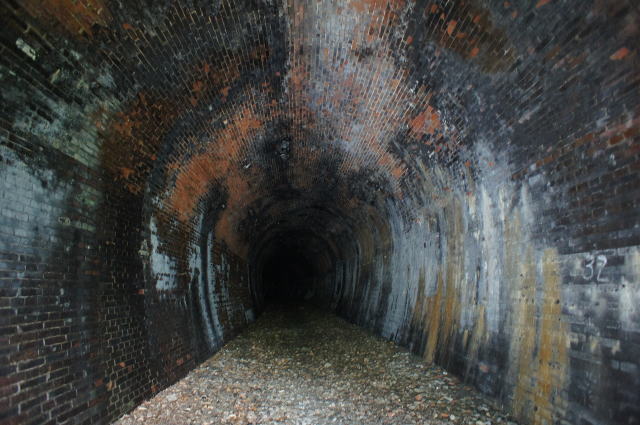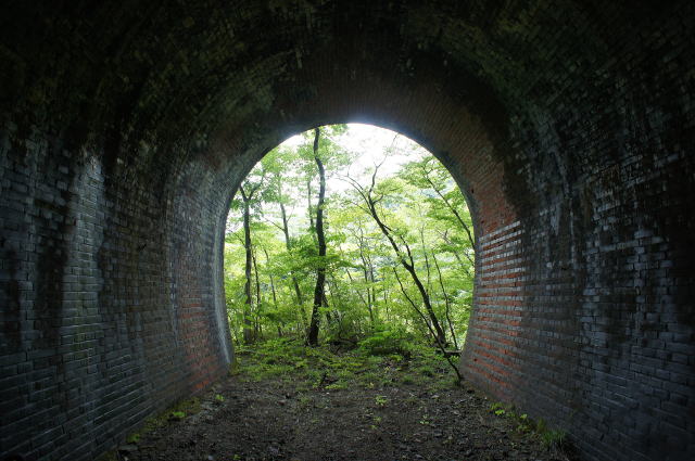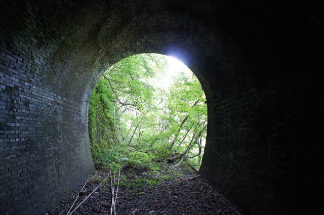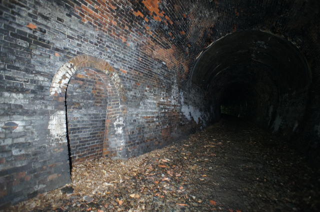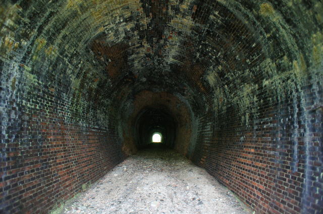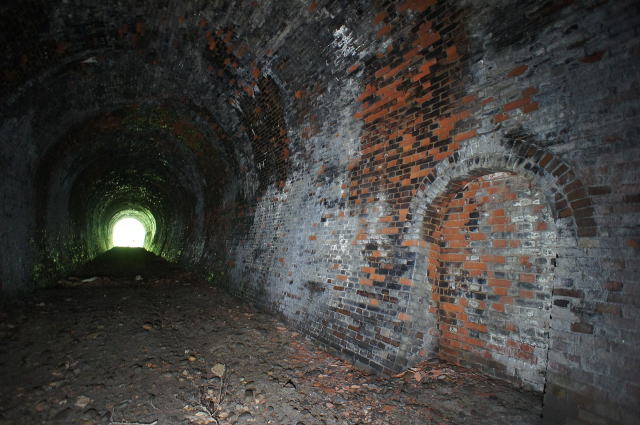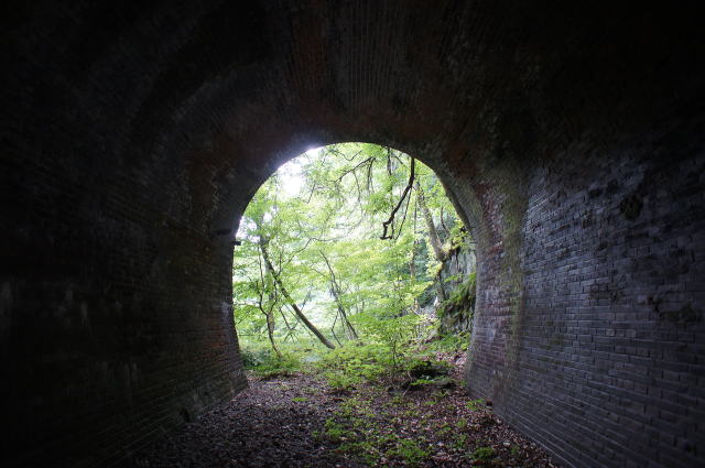 ![]() 右手の隙間からやってきて、振り返り。 これが2代目の煉瓦トンネルです。 |