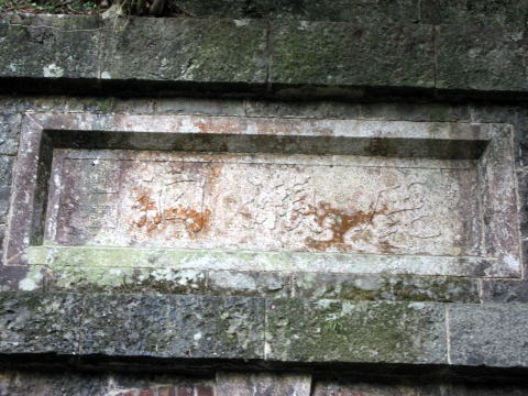 | 東側の方が状態よく保存されている。封鎖はつい最近(2007年?)。 坑門のサイズに比して、太いピラスターに感じる。 迫石は下部が切石、上部がレンガであり、巻厚は4層である。要石は切石を使用している。 内部レンガアーチは西側に残り、東側は素掘りのコンクリ吹きつけになっている。 扁額は東側のみ確認。風化がすすんでいるものの、「鹿瀬洞」とはっきり読み取れる。 |