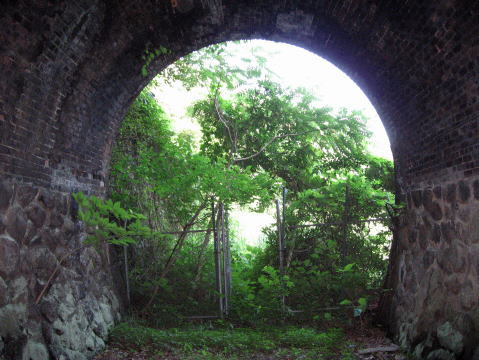 少しだけ坑門の石積みと煉瓦アーチが見えていますね。 |