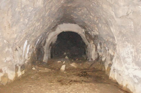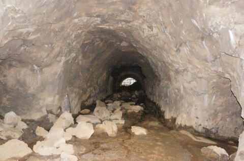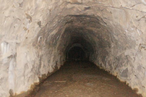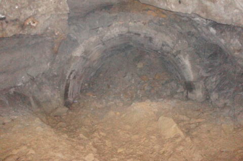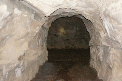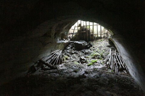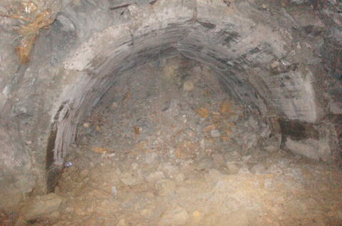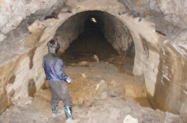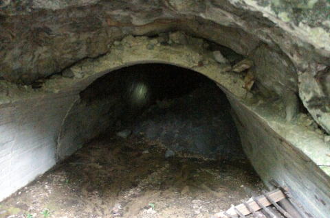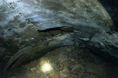 N坑の坑口より振り返り。 薄っぺらいコンクリートアーチの割れ目がはっき りと確認できます。 |