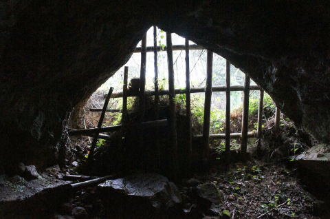 取りあえず横坑は置いといて、先に西側の坑口 を確認します。 寸前で崩落はあるもののしっかり開口している ようです。 |