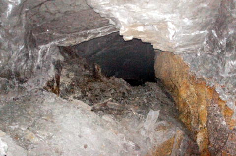 !!!!!!!!!!! ぐおおおおっ! 穴が開いておる。。。ちいーさなちいーさな穴 が。。。 なんか30pぐらいしか開口してません。。。 これを潜るのは激しくいやだ。。。 東側の坑口、開口してないかな〜。。。 そっちから回り込めれば。。。 |