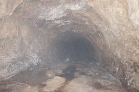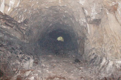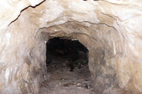 端点から振り返り。 ここは導坑の段階で、いずれ一回り大きく 掘削する予定だったのかもしれません。 そしてこのL坑からK坑に接続、さらにJ坑、I 坑、反対側はまだ見ぬM坑に接続させる予定 だったのかもしれませんねえ。 |