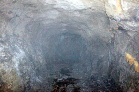 L坑からM坑へ続くと想定される横坑。 なんかM坑方面から土砂が大量に流入して いるような。。。 |