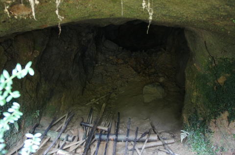 本来の坑口から相当高い位置に穴が開いて