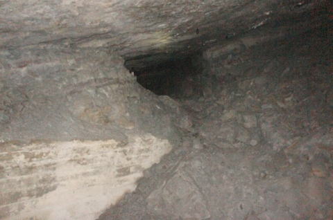 瓦礫を這い上がり、素掘りの天井面付近まで