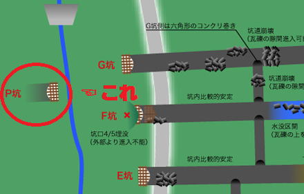 M坑は本坑と横坑の十字路寸前で大崩落、