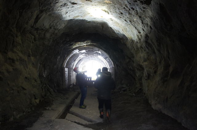 見事に素掘りの洞内。 しかしながら綺麗にアーチ状に成形されて います。 |