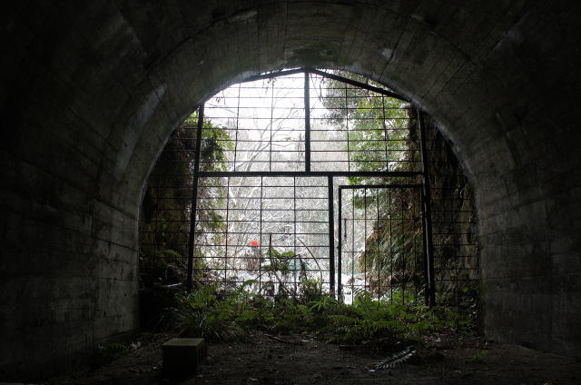 ![]() 2011年10月に一旦完了した鈴鹿海軍関地下防空工場隧道群探索。 実は僅かに未踏査ポイントが残っています。 まずはA抗。ここは鉄格子に施錠付きで内部の探索ができませんでした。しかしながらピカさんの1000ルーメンライトにて閉塞は確認しております。 そしてB坑。ここも鉄格子&施錠にて探索不能。ここもピカライトによって閉塞は確認しております。 で、I坑。ここは膝丈以上の水没(ウェーダー導入前だったこともあり)にて即時撤退。 ここはとのたまさん、パパンさんによって奥の状況は一応分かっております。 さらにO坑。ここは斜坑になっており、危険な状態なので今回も見合わせます。 2015年2月、今回は自称4000ルーメンのヘッドライトを導入したことを受けて、再度A坑、B坑、I坑のチェックを致します。 |