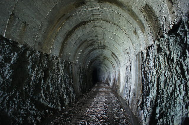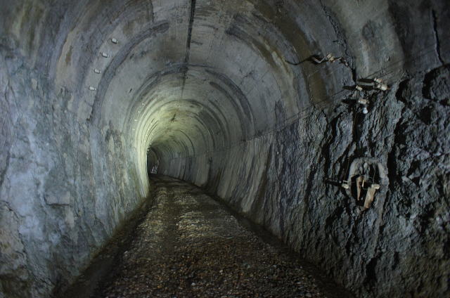 ![]() おおお…非常に綺麗な洞内です。 まさにすぐ現役でも全く問題ない感じがします。まあ廃止理由が当該路線の廃線ですからねえ。 バラストは均され、ダブルトラックが見えます。 |