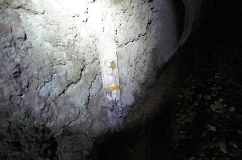![]() 部分的に素掘りの側壁が残っています。天狗山は凝灰岩という地質のようです。 掘りやすい地質のようなのか、この天狗山トンネルの他にも、二ヶ用水、宮竹用水などの水路隧道、石切り場の跡など そこかしこに穴が開いています。用水に関しては、今回の探索で少し触っていますが、もう少しちゃんと調査してからレポに しようと思います。 |