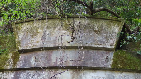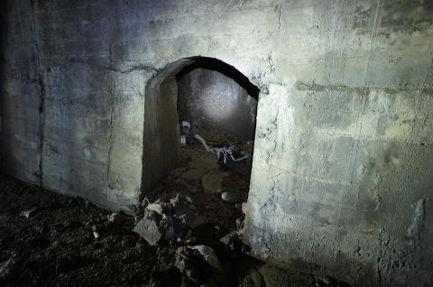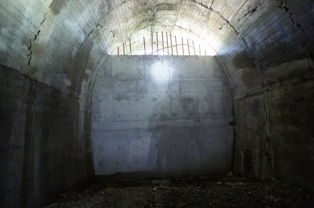 ![]() コンクリ壁による封鎖でございます。外気取り入れ口みたいな隙間が上部に開いていますが、あそこに行く術が ありません。 |