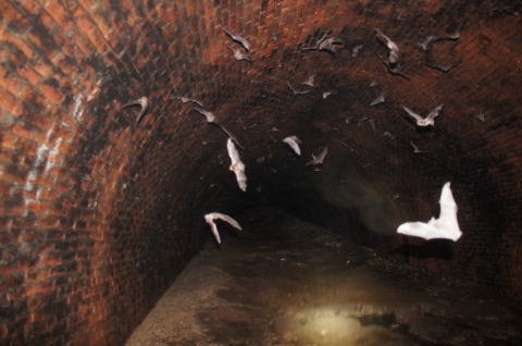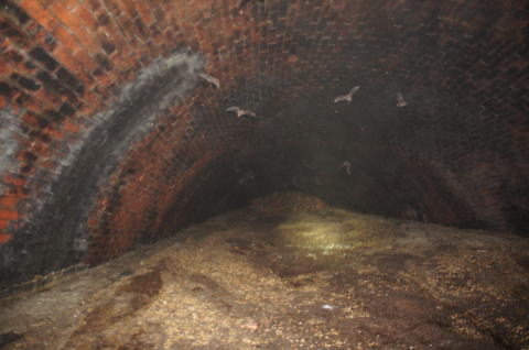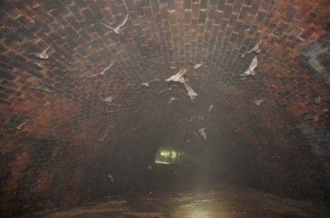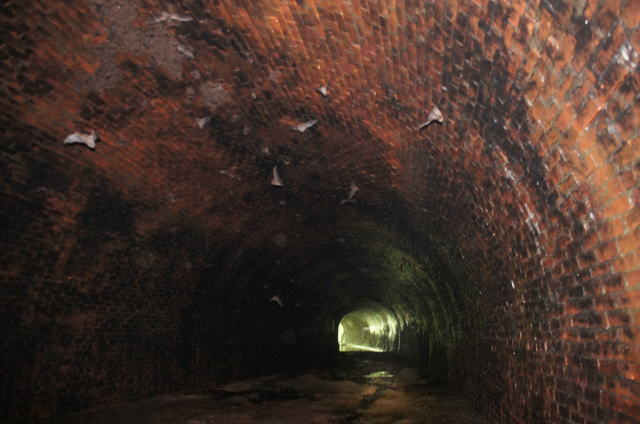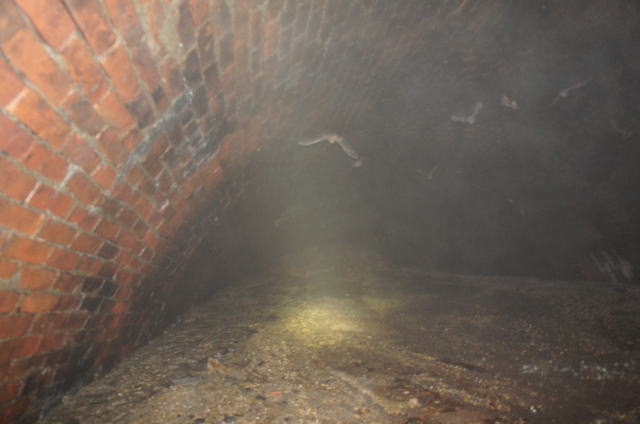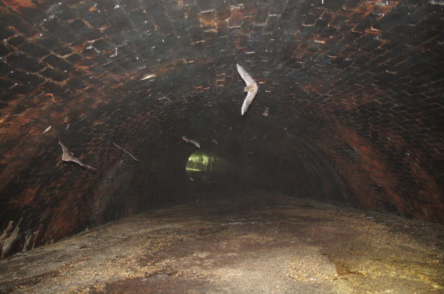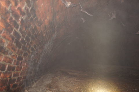 ![]() 大旋回こうもりさんのお蔭で坑口側から奥の視界がクリア! 既に大半のこうもりさんは奥に戻っていきました。棲家荒らしてすんません。 |